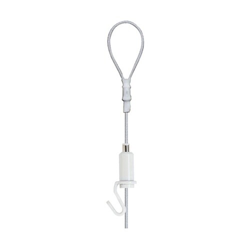 フック形状の自在金具とワイヤーがセットになった吊下げ金具です。額、ポスター等を好きな高さに簡単に移動させることが可能です。上下の移動はピンを押すだけ! 無段階で位置調節が可能です。ワイヤー、フックを黒 |