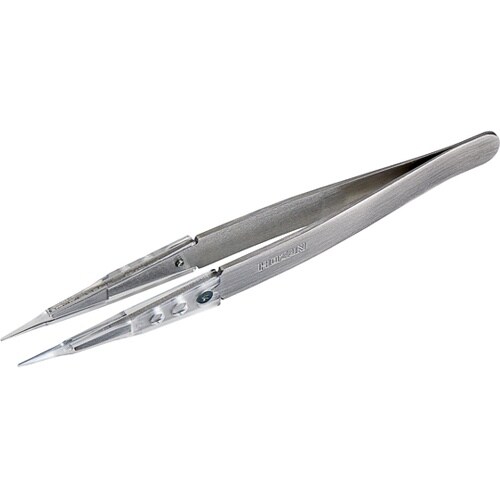 先端が透明素材のチップ交換式ピンセットステンレスピンセットのような使用感を実現先端が透明素材のため、掴んだ対象物の状態が透けて確認できます。ピンセット全体が一体樹脂成型されたものとは違い本体がステンレ |