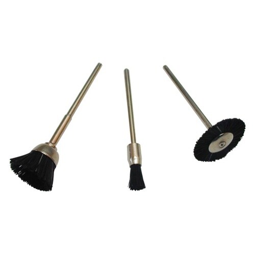 回転工具に取付けて研削、研磨する精密毛ブラシです。汚れ落としやクリーニングに使用します。研磨剤を塗布して微研磨にも使用されます。 |