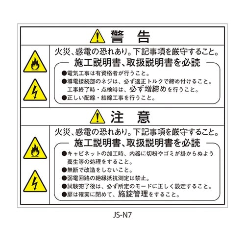 セフティデンキ 日本配電制御システム工業会仕様(JSIA)警告ラベル 和文 扉(裏面)貼付 1式(1枚×5シート入) JS−N7 A049-7974