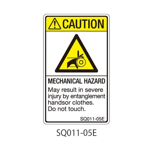 セフティデンキ SQシリーズ 注意ラベル 縦型 英文 巻き込み注意 1式(5枚×5シート入) SQ011−05E A049-7987