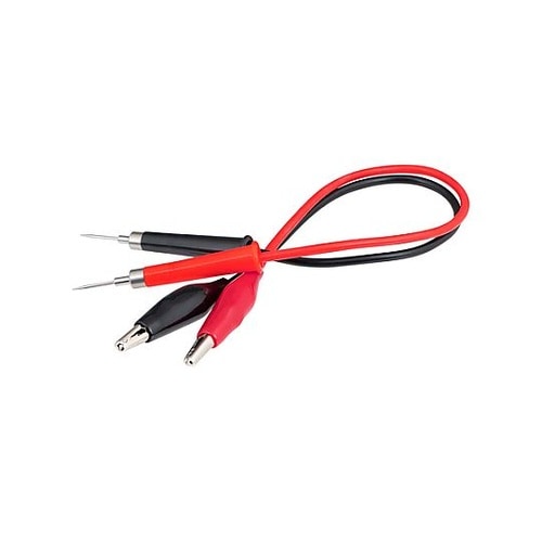 赤、黒ピンの各1個ずつテスター等のテストリードに接続して使用ピン先が針状になっているので、測定時に小型部品の端子に接触しやすいコネクターなどの微細部の測定に。 |