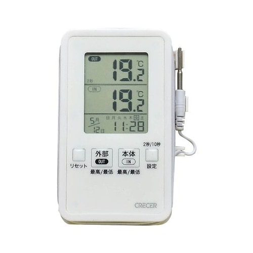 外部センサーと本体、2ヵ所の温度を独自に測定可能です。室内外・水槽・冷蔵庫・ペット・園芸・キャンプなどの温度管理に。本体は防滴(IPX4)、外部温度センサー部は完全防水(IPX7)コード(約3m)は、 |