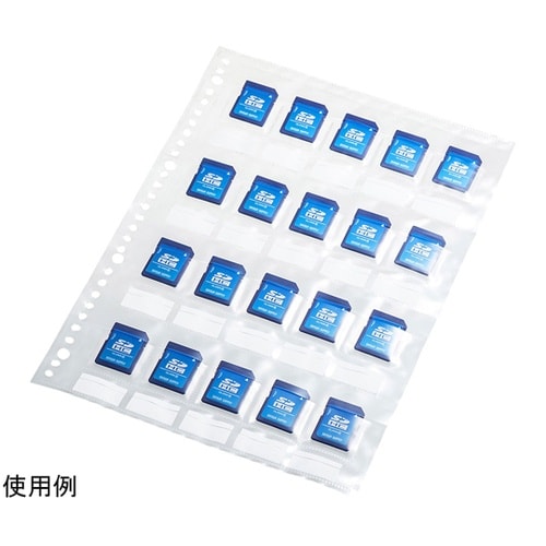 SDカードを1シートに20枚収納できるA4サイズのファイルシートです。持続的に帯電を防止する機能を持った帯電防止仕様のシートで、SDカードを静電気から守ります。シートに直接SDカードのタイトルやデータ |