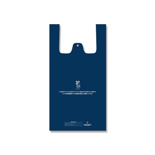 生物由来の有機資源を原料としたバイオマス成分を25%含んだレジ袋です。中身が透けにくい紺色。バイオマスマーク取得済みで、「プラスチック製買物袋有料化制度」の対象外とすることが可能です。主原料のサトウキ |
