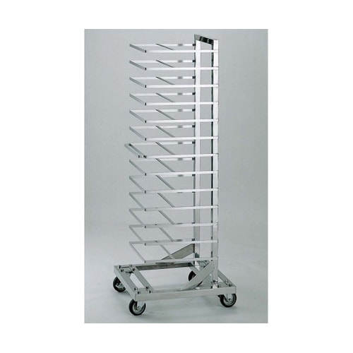 13枚までの天板が収納できます。天板を積み重ねて冷却しますのでスペースもとらず、調理室の空間を最大限に活用できます。それぞれ天板6枚取用と8枚取用があり、お店でお使いの天板に合わせお選びいただけます。 |