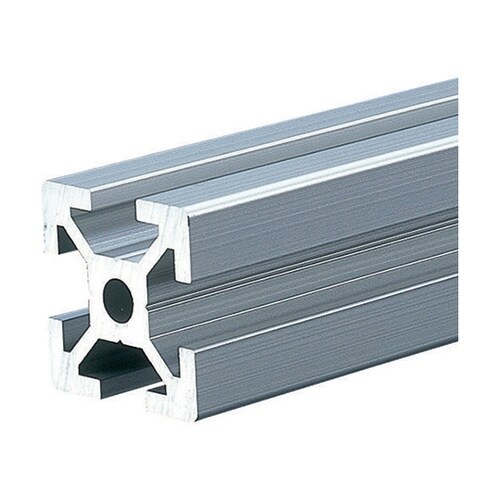 アルミの軽さを維持しながら、独自のフレーム断面で高剛性を実現しました。フレームの溝には専用ナットM3−M5が挿入でき、様々なボルトとの締結が可能です。表面をアルマイト処理(9μm以上)することで腐食を