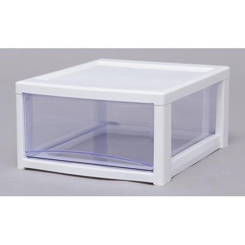 引出しの材質にスチロールを採用しているため透明度が高く、中身が確認しやすいクリアタイプのチェストです。引出しは飛び出しにくい、簡易ロック構造です。 |