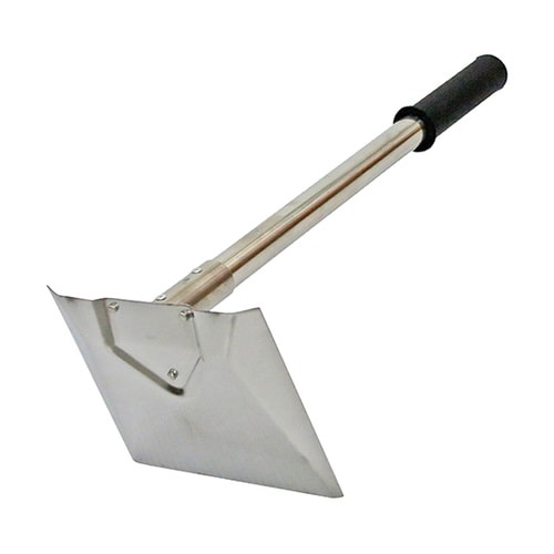 トロ舟で壁材を混ぜるときに使用するステン左官鍬。錆びにくいステンレス製。