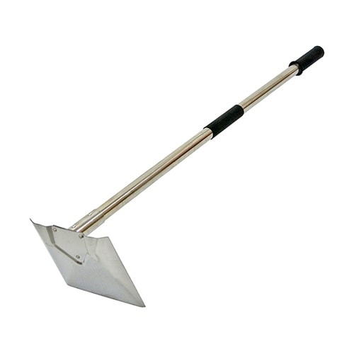 トロ舟で壁材を混ぜるときに使用するステン左官鍬。錆びにくいステンレス製。
