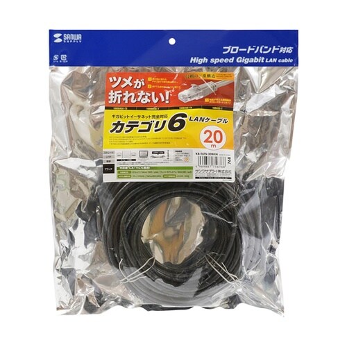 つめ折れ防止カテゴリ6LANケーブル KB−T6TS−20BKN