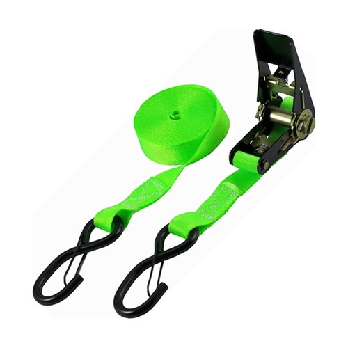 アウトドア・レジャーに。荷崩れ防止に。パレットの積荷の荷崩れ防止に。ベルトの両端にはSフック(金属製)付きなので、取り付け・引っかけに便利です。ベルトの巻取りにラチェットが付いているので、強い締め付け |