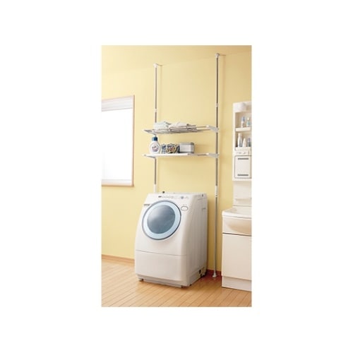 収納に困りがちな洗濯機周りを、有効に活用できる突っ張りランドリーラックです。丈夫でさびにくいステンレス巻きパイプを使用しています。メッシュ棚とフラット棚2枚付きです。組み立て簡単で、洗濯パンの上に取り |