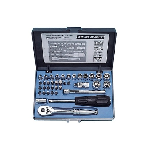 ミラー仕上げのメッキが美しいスタンダードソケットセット。ボルト・ナットを傷めにくい面接触タイプ。6角タイプ。ブローモールドケース入り。 |