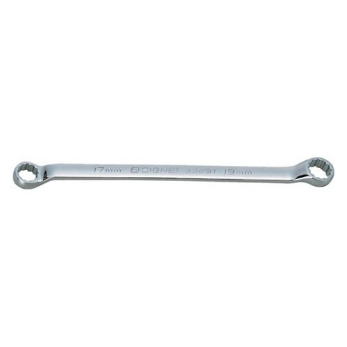 ヘッド部がコンパクトなメガネレンチ。ミラー仕上げ。オフセット部がコンパクトで短く狭い場所でも使いやすい。 |