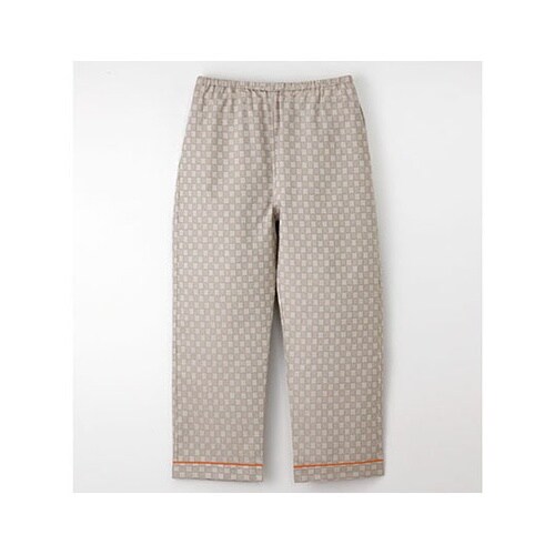 高級感と落ち着きを感じさせるカラー・デザイン。安らぎを与えてくれます。ウエスト総ゴムのリラックスできるパンツです。高級感のあるドビー織柄です。綿高混率のため吸汗性に優れ、着心地が良い素材です。業務用洗