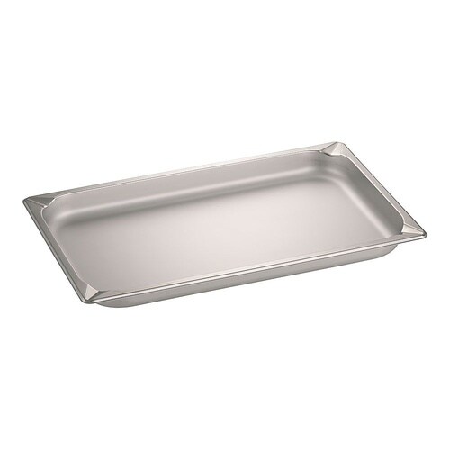 納得の作業性コーナー部分の凹みは変形や密着を防ぐだけでなく、他のホテルパンや容器への移し替えをする時の注ぎ口としてもご使用いただけるようにデザインされています。納得の機能性 本体側面の段差と特殊コーナ |