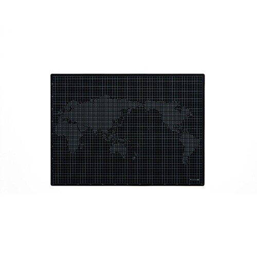 軟質+硬質+軟質の三層構造で両面使用可能なカッターマット。1cm単位のグリッド印刷付。片面(黒)は世界地図を模したドット入。片面(グレー)は落ち着きのあるライトグレー。目にやさしいホワイト印刷。 |