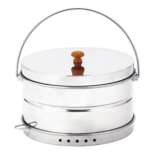 網が大きく、色々な食材をならべて一度にスモークすることが可能です。底蓋と本体に各10ヵ所の空気穴があり、食材によって空気の量を調整できます。 |
