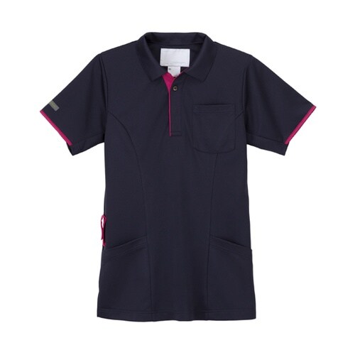 衿元の配色がスポーティーな印象のポロシャツです。エアアームカットを搭載し、爽感素材を使用した着心地の大変優れたプロファンクション仕様となっています。ボタンが表になるべく出ない工夫もあり、優しさも備えた