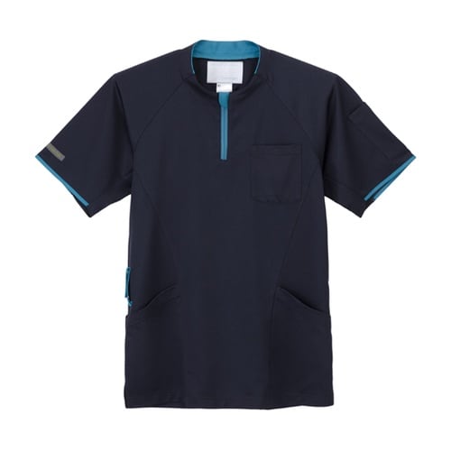 スポーティーですっきりとしたスタンド衿デザイン。エアーアームカットを搭載し、爽感素材を使用したプロファンクション仕様。ファスナーの引手が表に出ていないため安心してご着用いただけます。男女兼用左胸、両腰