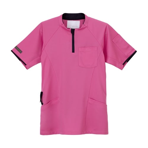 スポーティーですっきりとしたスタンド衿デザイン。エアーアームカットを搭載し、爽感素材を使用したプロファンクション仕様。ファスナーの引手が表に出ていないため安心してご着用いただけます。男女兼用左胸、両腰