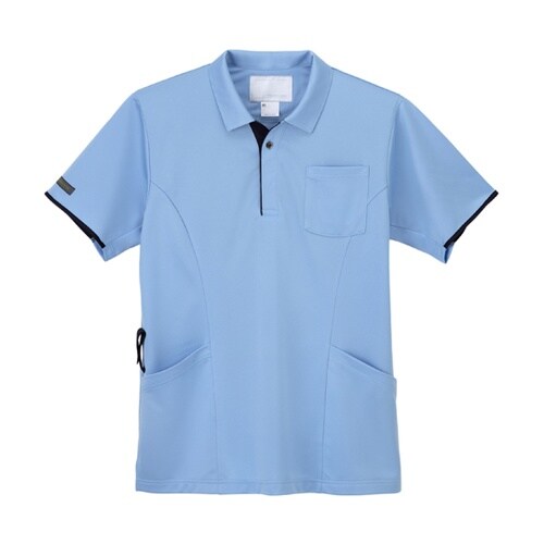衿元の配色がスポーティーな印象のポロシャツです。エアアームカットを搭載し、爽感素材を使用した着心地の大変優れたプロファンクション仕様となっています。ボタンが表になるべく出ない工夫もあり、優しさも備えた
