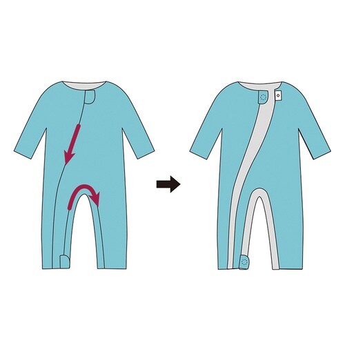 首元から右足首にかけて開き、股部分も開閉が可能です。