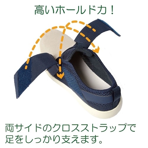 安定した歩行をサポートする室内外兼用シューズです。普段履きにも使えるツートーンカラーのおしゃれでカジュアルなデザインです。足幅4E、足囲3.5Eとゆったり設計で足のストレスを軽減し、中敷を取り外すと足