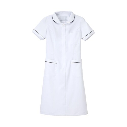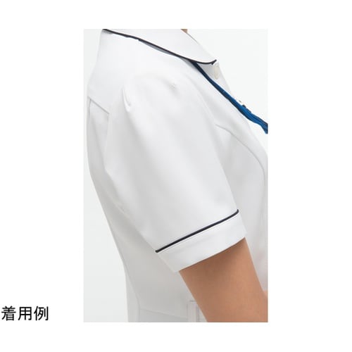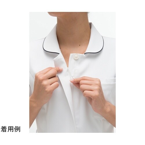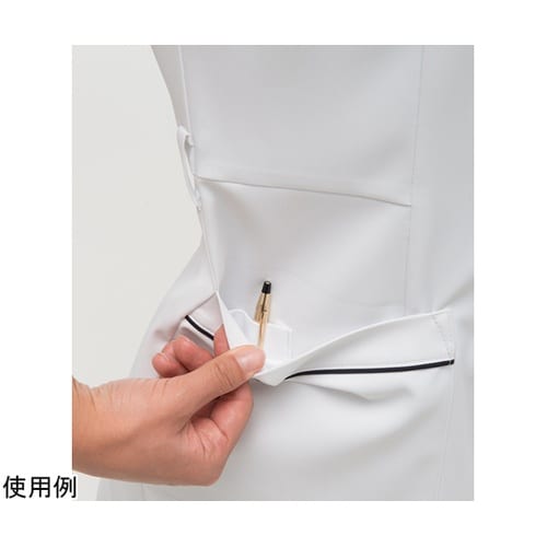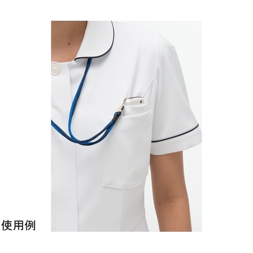 衿元が開いているデザインはフェイスラインをすっきり見せてくれます。ナースの動きに対応するよう開発した伸縮性バツグンの素材なので、すっきりシルエットが可能になりスマートに見せてくれます。左胸(PHSポケ |
