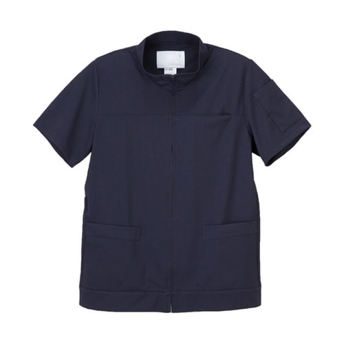 センターファスナー開きのジャケットです。落ち着いたカラーとシャープなデザインが信頼感を感じさせます。左胸、両腰ポケット、左袖ペンポケット透け防止フルダルポリエステル糸使いにより、極めて高い透け防止効果 |