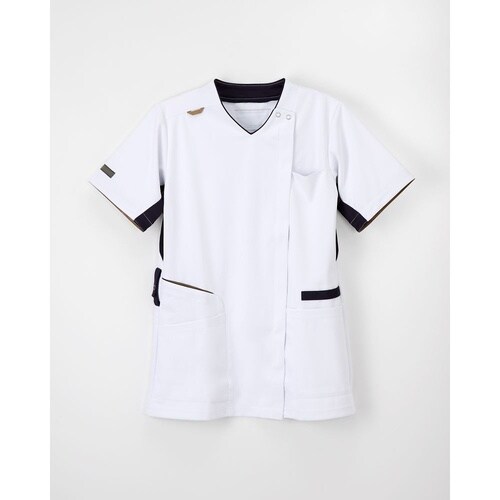 様々な機能をちりばめたフロントファスナー開きの男女兼用ホワイトスクラブです。動きやすくて涼しいプロファンクション機能を搭載し、スマートフォン用ポケットや多機能ループ、ストラップをかけられる衿吊りなど最