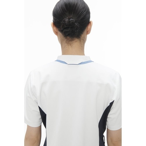 カットが入った衿、ポケットのデザインが新しさを感じさせてくれる男女兼用スクラブです。通気性・伸縮性抜群のニット素材を使用し、ループが直接肌に当たりにくいタブ付きの高機能デザインです。