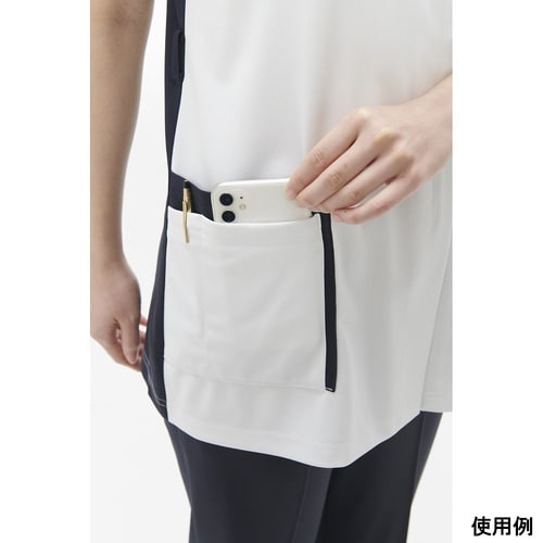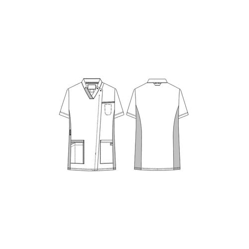 カットが入った衿、ポケットのデザインが新しさを感じさせてくれる男女兼用スクラブです。通気性・伸縮性抜群のニット素材を使用し、ループが直接肌に当たりにくいタブ付きの高機能デザインです。