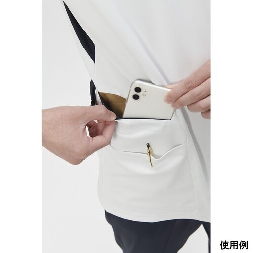 様々な機能をちりばめたフロントファスナー開きの男女兼用ホワイトスクラブです。動きやすくて涼しいプロファンクション機能を搭載し、スマートフォン用ポケットや多機能ループ、ストラップをかけられる衿吊りなど最