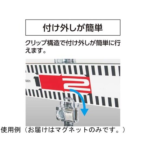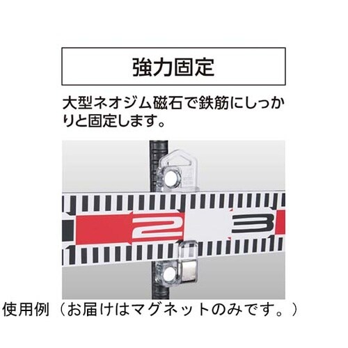 強力ネオジム磁石で鉄筋に標尺やロッドテープをしっかり固定出来ます。クリップ構造で標尺の付け外しが簡単にできます。 |