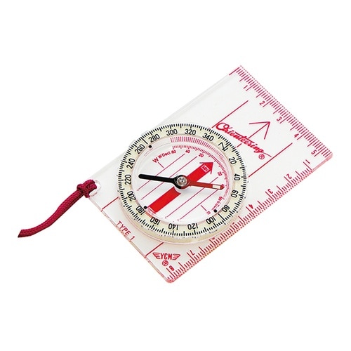 首に掛けられるひも付きです。コンパスについている目盛で目的地までの距離が測れます。磁北線を引くことができます。 |