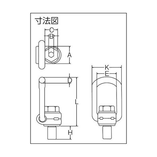 シャックル機能付き吊り具で吊り環が90度スイングします。シャックルの代わりとして。