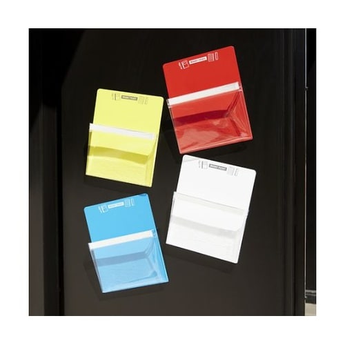 マグネット製のポケットのため金属であればどこにでも貼り付け可能です。ワゴンやキャビネットなど現場内にあるものに貼り付けできるため便利です。 |