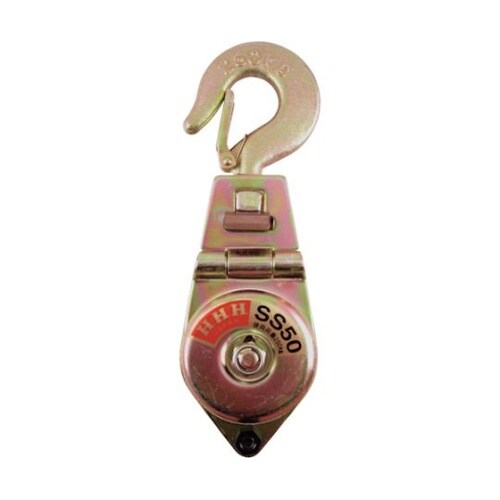 小型軽量で持ち運びが容易です。側板の開閉ができます。ロープを通し、荷物などの吊り上げや引っ張り作業に。 |