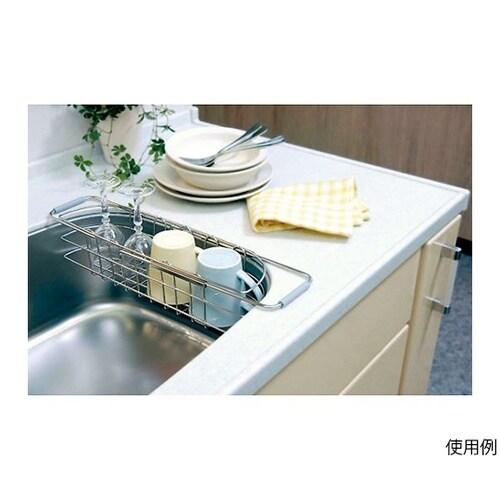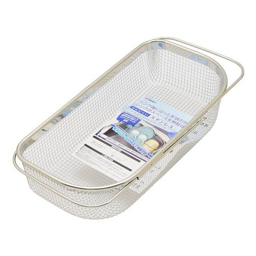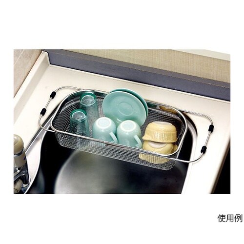 シンク端に沿った形状だから、シンクのスペースを無駄なく使用シンクに合わせて調整できるスライド式シンクをキズつけないゴム付小物の水切りにも便利な目の細かいファインメッシュを使用お皿や野菜の水切りに |