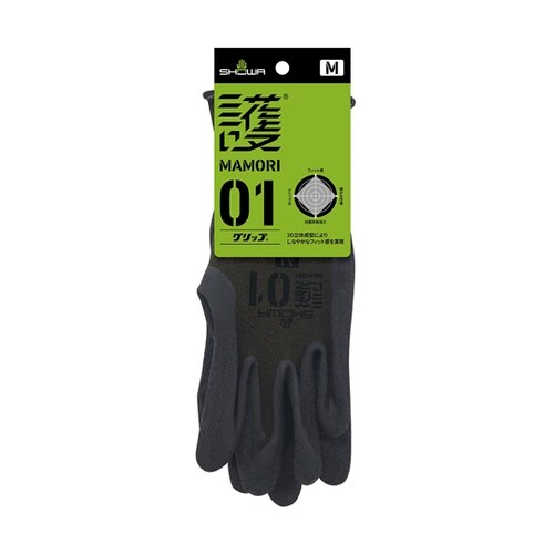 護(MAMORI)01 グリップ M (手のひら天然ゴムコーティングの背抜き手袋) 10双入 MAMORI01−M