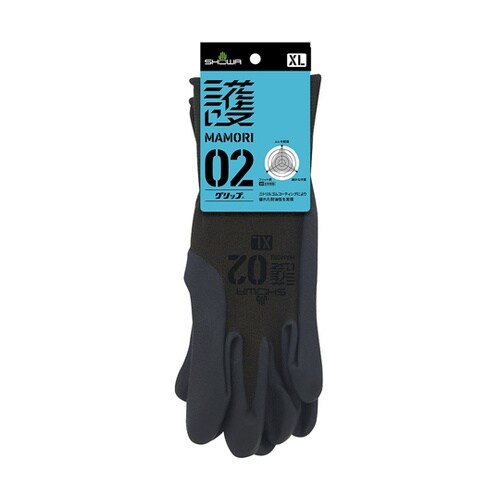 護(MAMORI)02 グリップ XL (手のひら発泡ニトリルゴムコーティングの背抜き手袋) 10双入 MAMORI02−XL