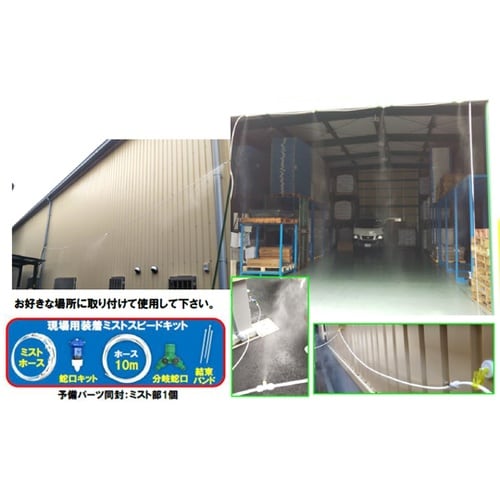 簡単に取り付けられるマルチタイプの現場用ミストホースです。フェンス・単管パイプ・壁・軒など、どこにでも取り付けて使用できる水道タイプのミストです。水道蛇口の使用に困らない分岐蛇口もセットしています。省 |