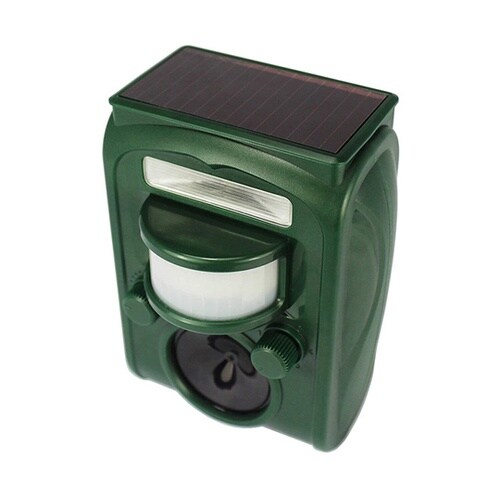 感知範囲に動物が入ると、赤外線センサーが反応し、強力な「超音波」「LEDライトの点滅」「警報音」(※ダイヤルにて選択可)を発します。不快感を与え、動物を傷つけずにこの範囲から追い払います。上部のソーラ |