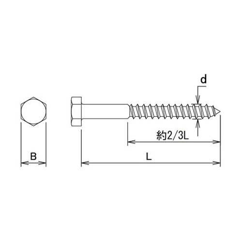 素材を突き抜けたくないが、ボルトの太さが欲しい場合などに適しています。頭部形状が六角頭になっていますので、レンチやスパナを使用して締め付け可能です。木用ビスではものたりない強度の必要な箇所に。 |