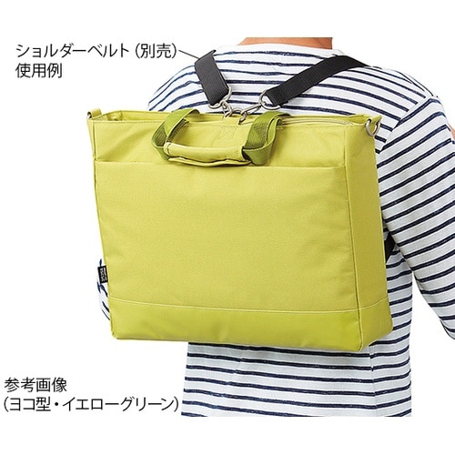 表生地に撥水加工を施し、底面は水や汚れに強い樹脂コーティング生地を使用しています。スマートフォンなどの収納に便利な吊りポケット付きです。別売のショルダーベルトを取り付けると、ショルダーバッグやリュック |