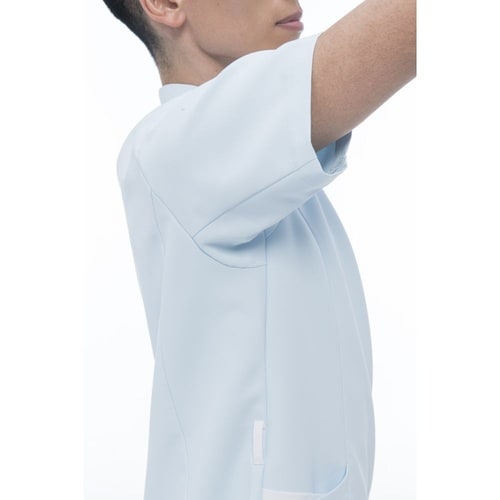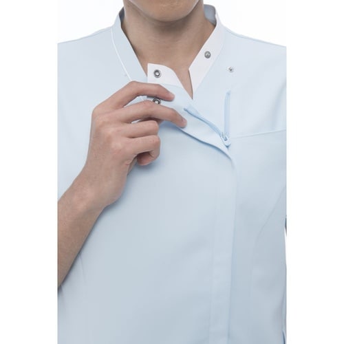アシンメトリーな襟元が新しさを感じさせる男女兼用の前ファスナー開きスクラブです。エアーアームカット機能を搭載しているため肩回りの動きに対するストレスを大幅に軽減します。 |