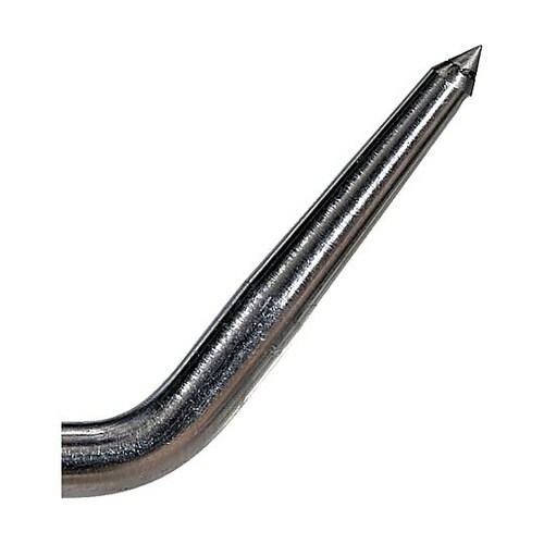 先端が超硬チップ付きのため、硬い鋼、ガラスなどに対してもケガキができます。摩耗が少なく、欠けやまくれが出にくい耐久性のあるケガキです。工作物の面に仕上げ寸法の線引きや芯出しに用います。先端曲がりタイプ |