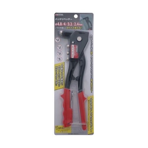 レンチ付きドライバー(ノズル取替用)薄鉄板・アルミ板・樹脂性の板などの締結力が入りやすいエルゴノミックハンドル2.4mm・3.2mm・4.0mm・4.8mmのノズルを使い分けてリベット打ちが可能 |
